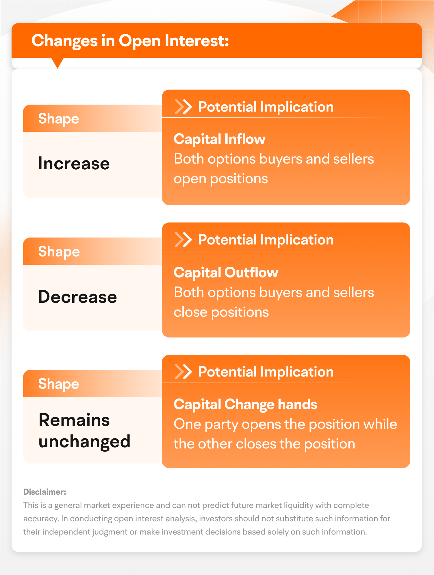 Before opening a position, you'd better observe the open interest of a specific option, which may help predict whether the market has sufficient liquidity.