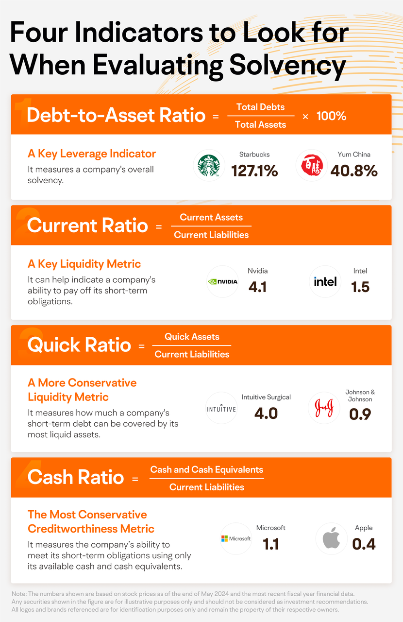 The premise of making investments is to control losses, while healthy growth of the company is to maintain a healthy financial position. Therefore, it is crucial to assess a company's solvency, companies with too weak solvency may even have a bankruptcy crisis due to a broken capital chain. We list the 4 most commonly used indicators to measure the solvency of a company.